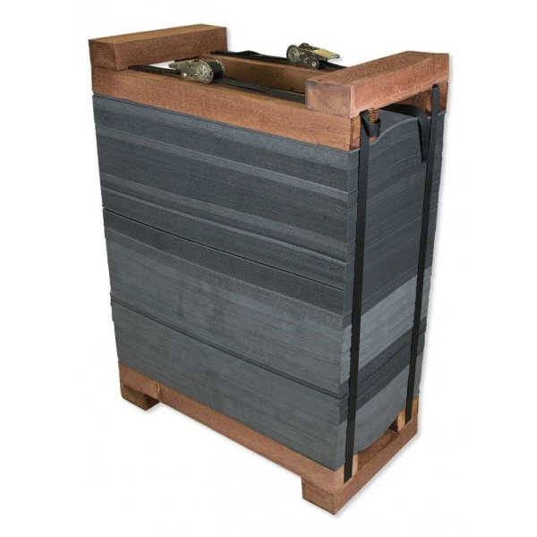 - Cible formée par un empilage de bandes de mousse dans un cadre en bois et serrée par sangle à cliquet