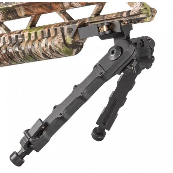 - Bipied disposant d’un bras pliable robuste avec ressort de tension extérieur.
