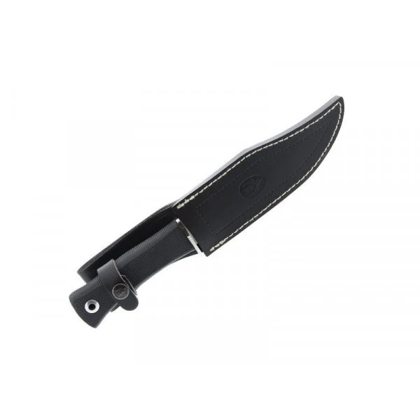 - Poignard « 21733 » lame 16 cm acier inox X50CrMoV15, manche gomme noire, garde inox, étui cuir.