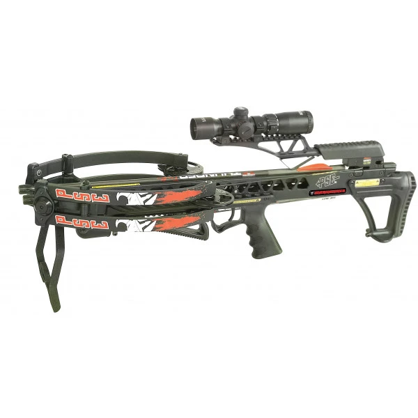 | Accessoires | 3 traits 22″ Thunder avec pointes 100gr, lunette HDV 425, carquois, lubrifiant, sangle néoprène, armeur manuel |